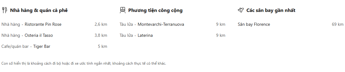 Trung tâm Terranuova Bracciolini cách đó 5 km và Ga tàu Montevarchi cách khách sạn 10 km. Có thể đến Florence trong vòng 50 phút bằng ô tô.