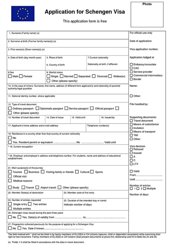 HÌNH ẢNH FORM KHAI VISA SCHENGEN
